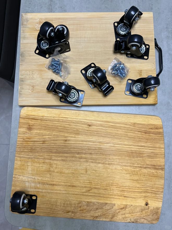 大家只需要花几块钱在网上买4个万向轮,然后将其安装在旧菜板上,这样就变成了一个非常实用的小推车。