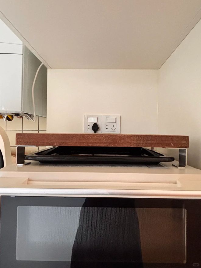 这样就可以将其放置在烤箱或者是微波炉的上方,能够用来放置一些物品,还可以增加家中的收纳空间。