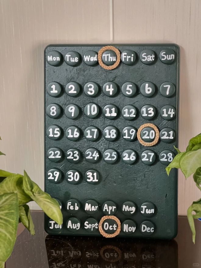 做好了这些准备之后,再使用丙烯涂料写上日期以及文字,就能够变成一个非常独特的日历了。